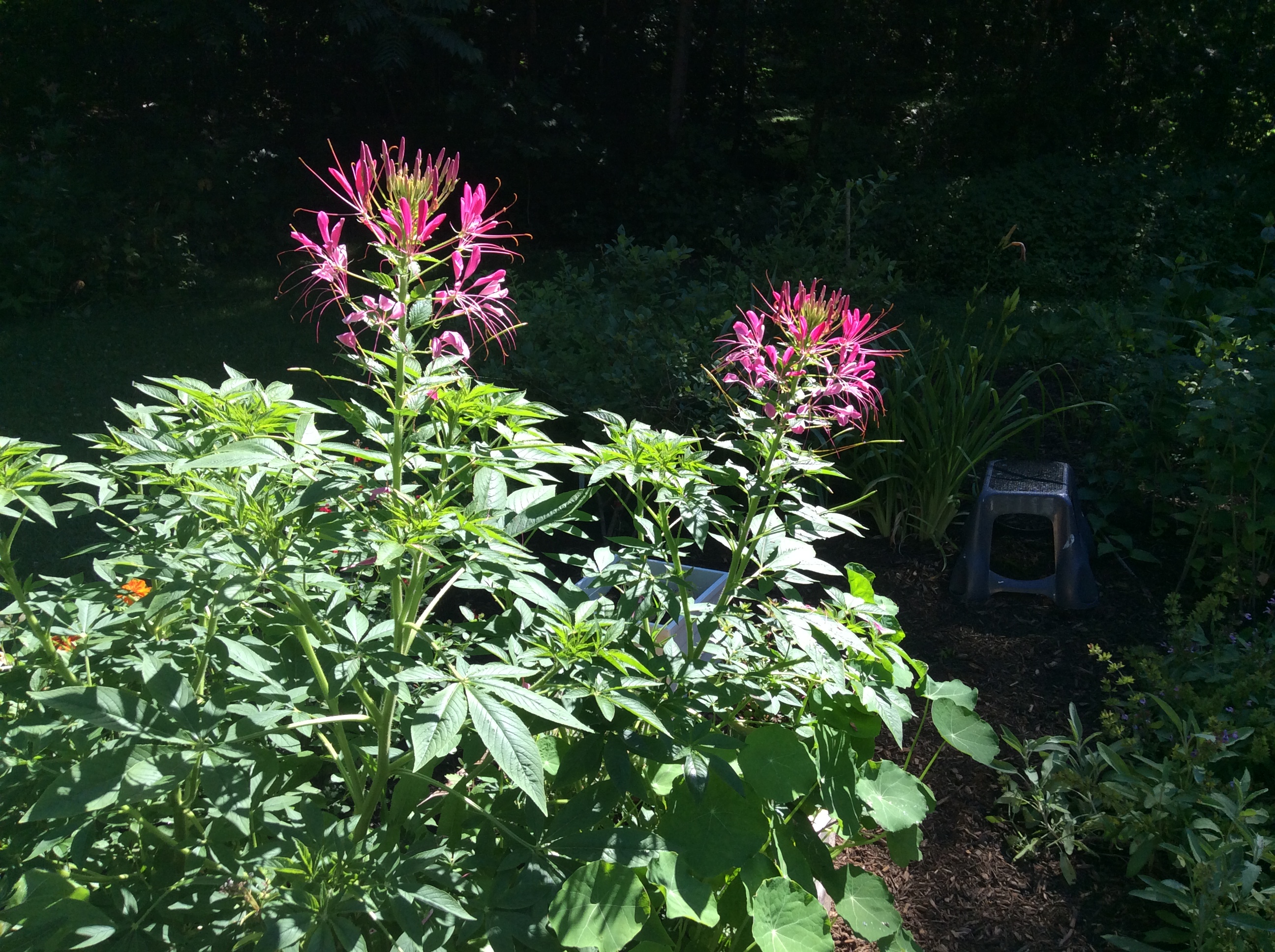 But I’m intrigued by whimsical paths. I’ve created a few of these over the years although they’ve all ended up overgrown. When I put in the bed in front of the maple in the front yard I made a path curved through the middle. It was partly practical–gave me weeding access–but it was also a path to nowhere and that entertained me. It soon became home to Siberian iris volunteers and is now just part of the bed. There was another path I made into the middle of the circular bed in the front—I even put down paving stones and placed a bird bath in the middle, hidden from view unless you walked along the path–but that path too became overgrown and the bird bath now sits in the back yard.